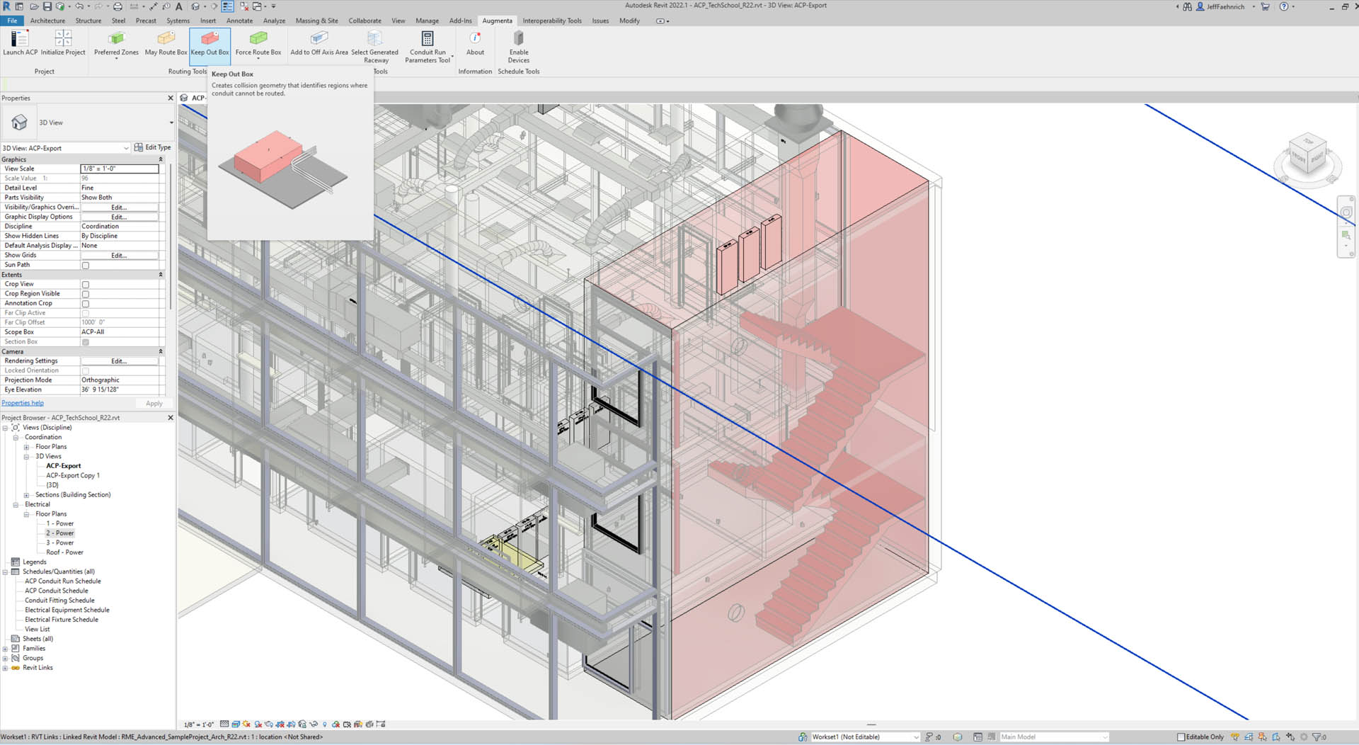 Szymanski: Basically, there are three main inputs: Revit model with just the most basic setup in terms of electrical equipment, the conduit run schedule, which defines your ‘tos an froms’ and what you want to run between that equipment, along with the design rules.